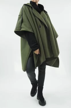 Unveil an aura of timeless sophistication with our captivating Made in Italy Kensington Cape Khaki green tone – a true masterpiece that marries fashion and finesse. Crafted with meticulous attention to detail, this piece transforms outerwear into a statement of elevated elegance. The flowing lines and luxurious fabric create a sense of movement, while the minimalist design speaks volumes in its subtlety. Draped over a tailored ensemble or layered atop an evening gown, this cape epitomizes versatility and grace.