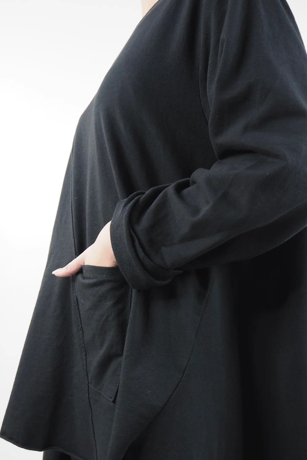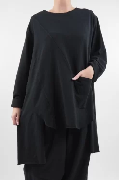 Made In Italy Lagenlook High Low Pocket Sweatshirt Black
