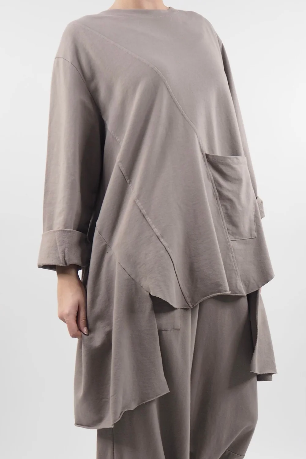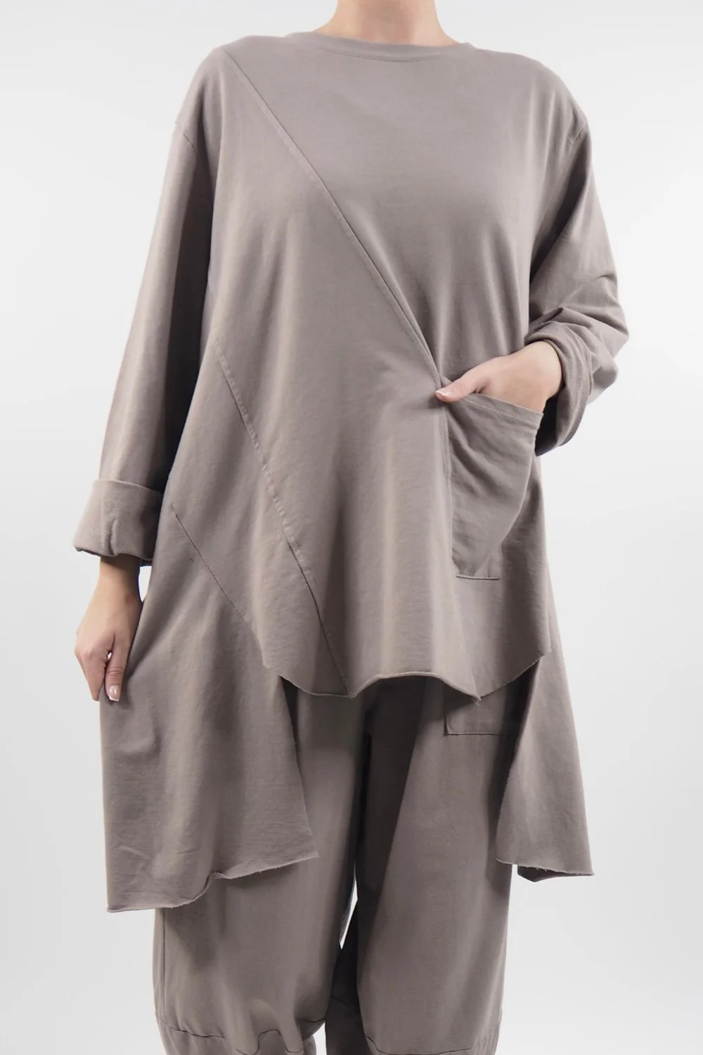 Let’s take your casual wardrobe to the next level with the Made in Italy Lagenlook High Low Pocket Sweatshirt in Mushroom, brown tone, this piece effortlessly combines quirky design features with comfort, making them a must-have staple for everyone. Made from the softest cotton, with the perfect amount of stretch, the pocket & seam details add a comtempoary twist. Style with our Made in Italy Lagenlook Shelby Pants or Made in Italy Lagenlook Classic Cocoon Pants in Mushroom for a must have look this autumn.