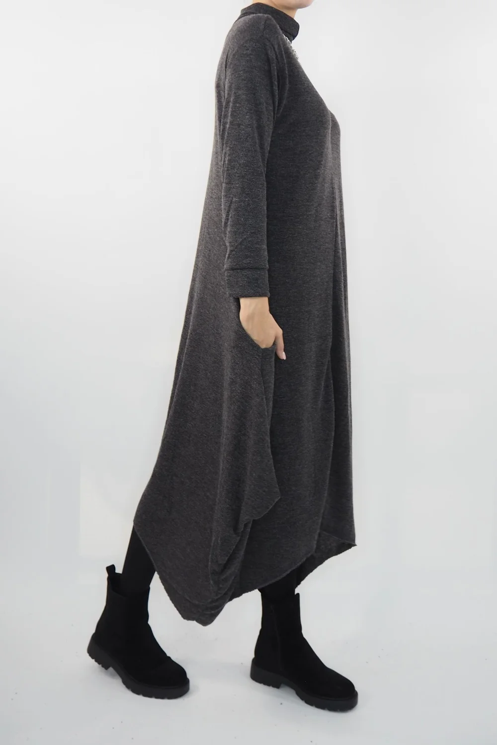 Indulge in the epitome of edgy luxury with this extraordinary piece: the Moxie Polo Neck Tulip Knit Dress from Made in Italy Clothing redefines elegance and style. The chic polo neck design adds a touch of sophistication while maintaining an air of avant-garde rebellion. Crafted with the finest yarn, this dress is a tactile delight, wrapping you in a warm embrace of opulence & the daring tulip hemline cascades gracefully. Its unique combination of bold design and sumptuous comfort makes it the perfect choice for the style-conscious woman who also craves comfort.