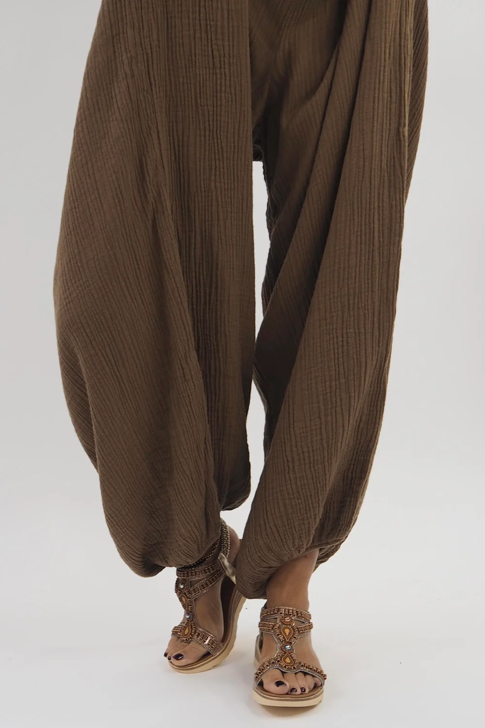 Made In Italy Obi Crepe Cotton Balloon Jumpsuit Saddle