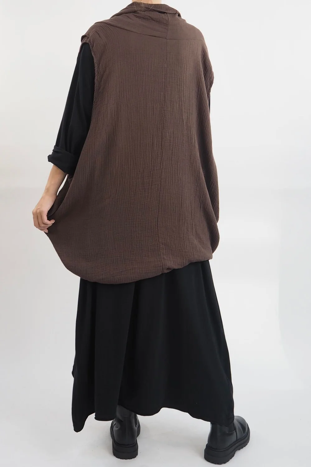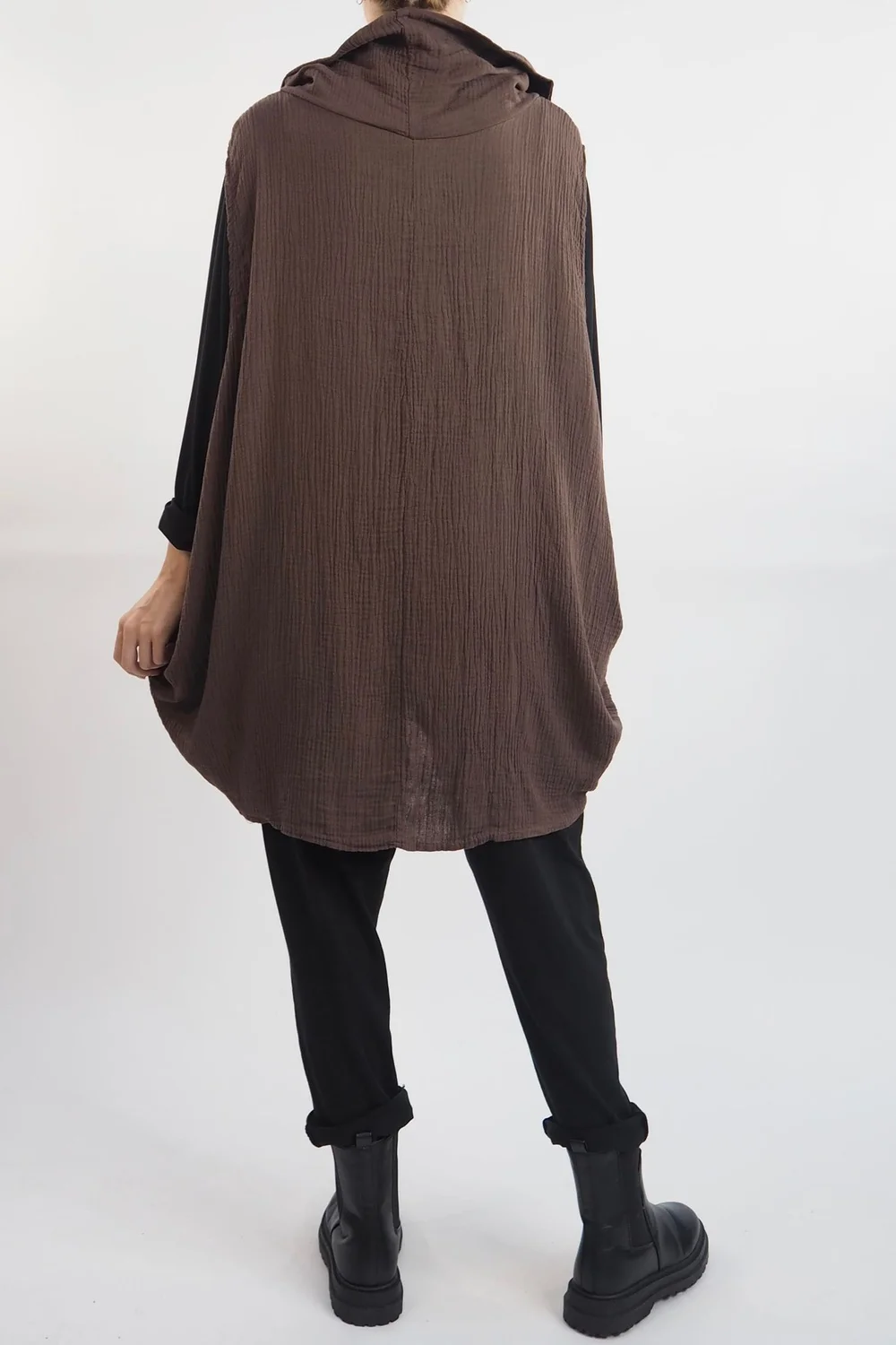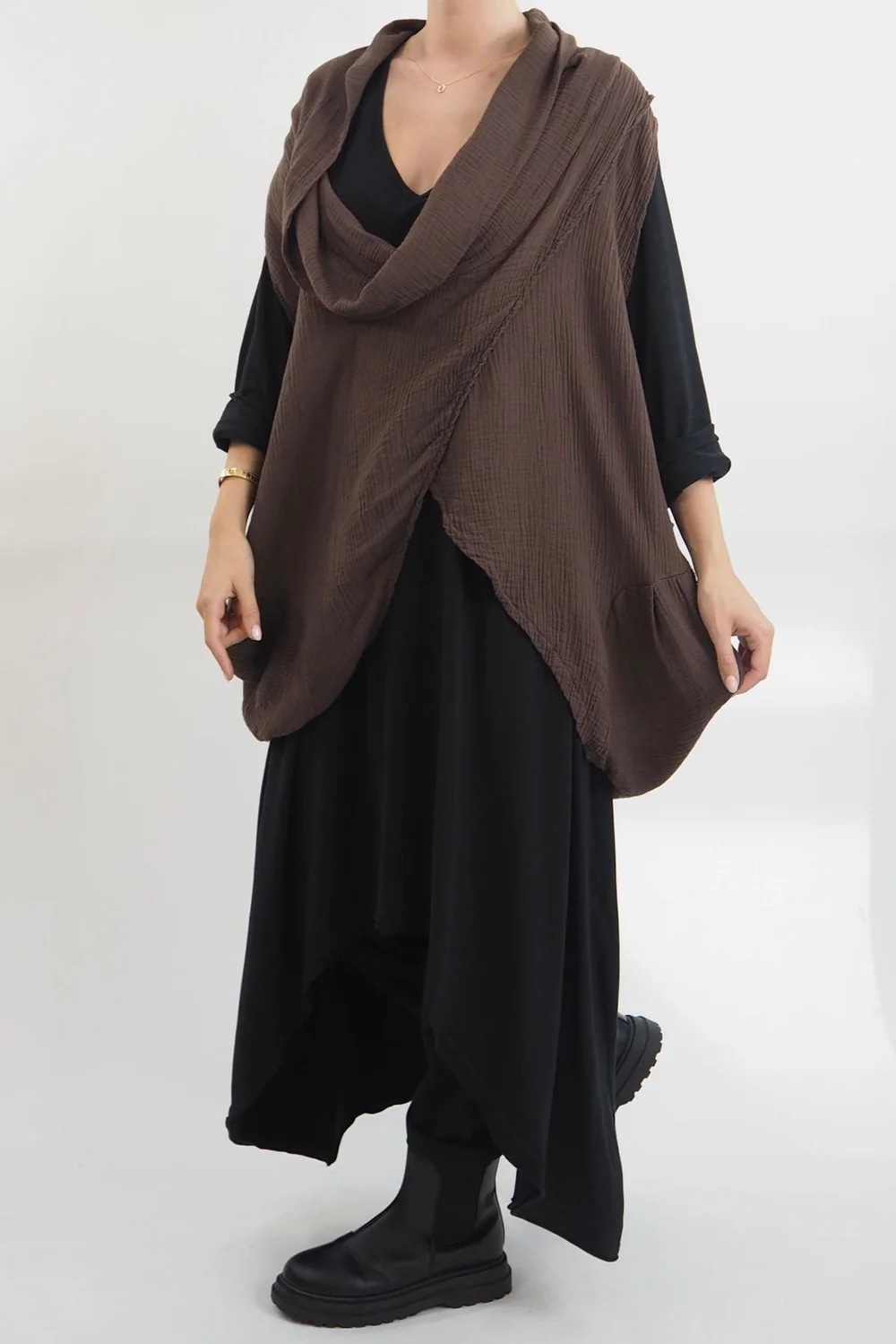 Made In Italy Obi Crepe Cotton Cross Cowl Tank Truffle