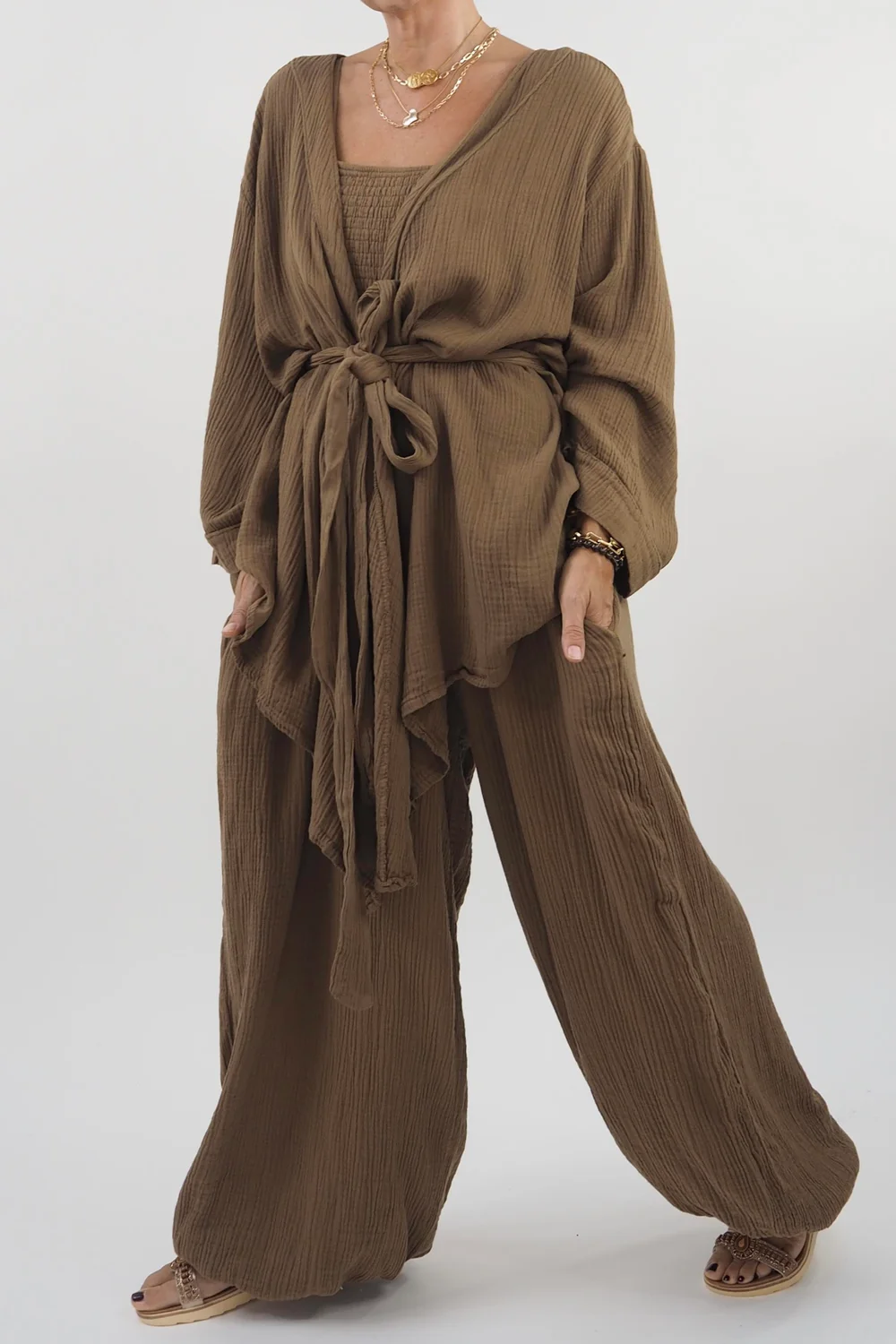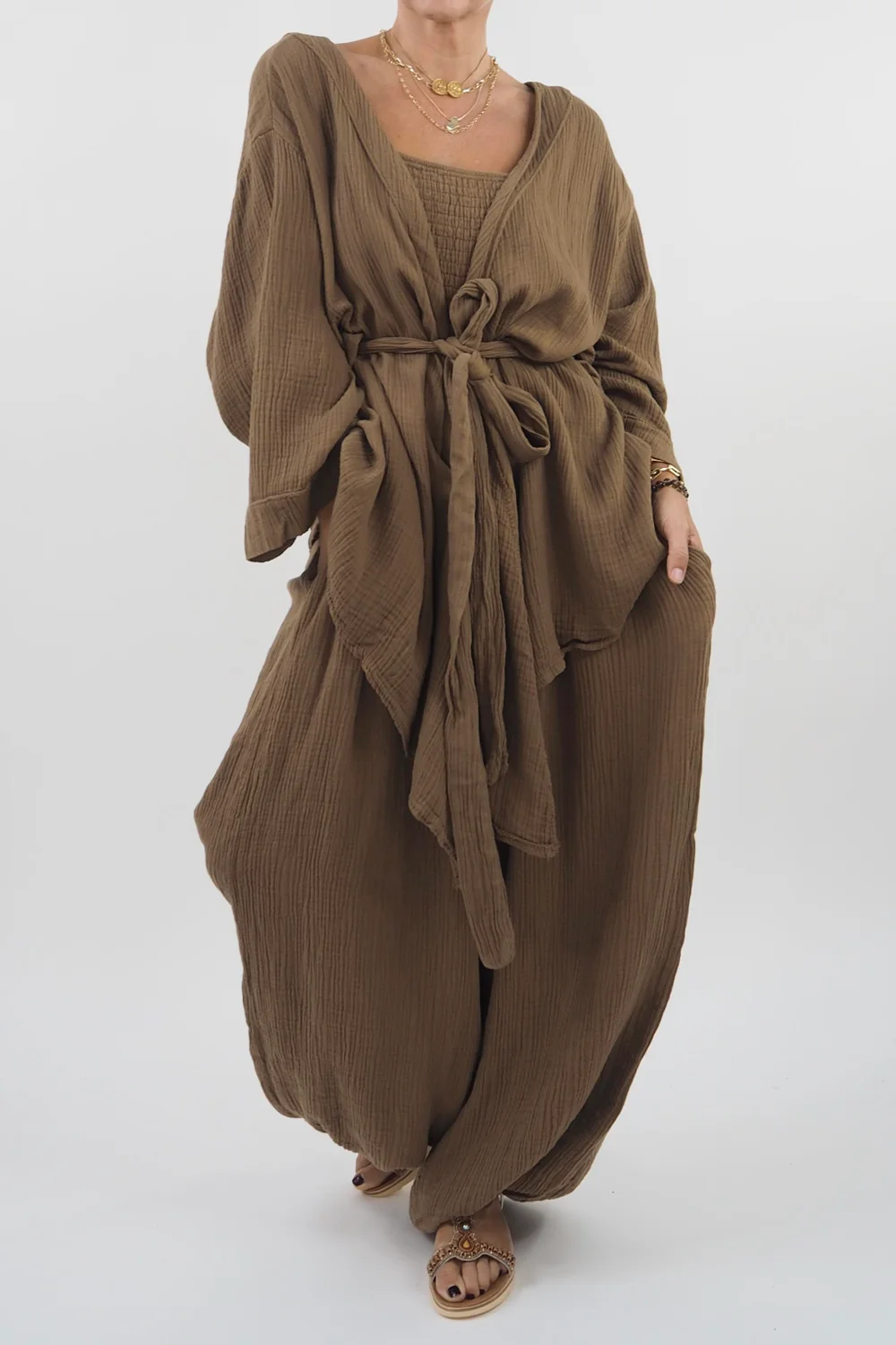 Made In Italy Obi Crepe Cotton Wrap Jacket Saddle
