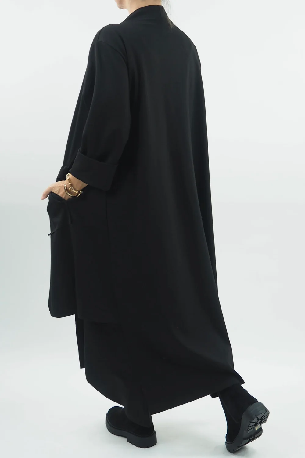Introducing the epitome of avant-garde urban elegance: the Made in Italy Ori X Stretch Duster Jacket in a Classic Black Tone. A dynamic fusion of cutting-edge design and unparalleled comfort, these jackets redefine contemporary fashion with their revolutionary construction. Crafted from a high-tech scuba fabric, renowned for its sculptural qualities and impeccable structure, these dusters boast an architectural allure that drapes like a masterpiece. The elongated silhouette flows effortlessly, conjuring a harmonious interplay of sleek lines and voluminous shapes, while the fabric’s innate stretch ensures a flawless fit.