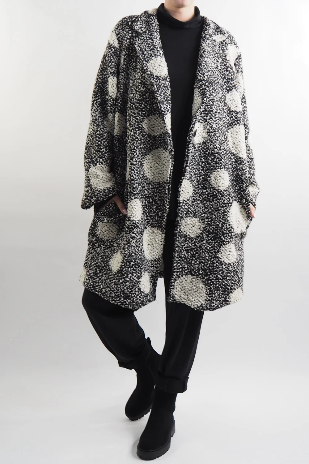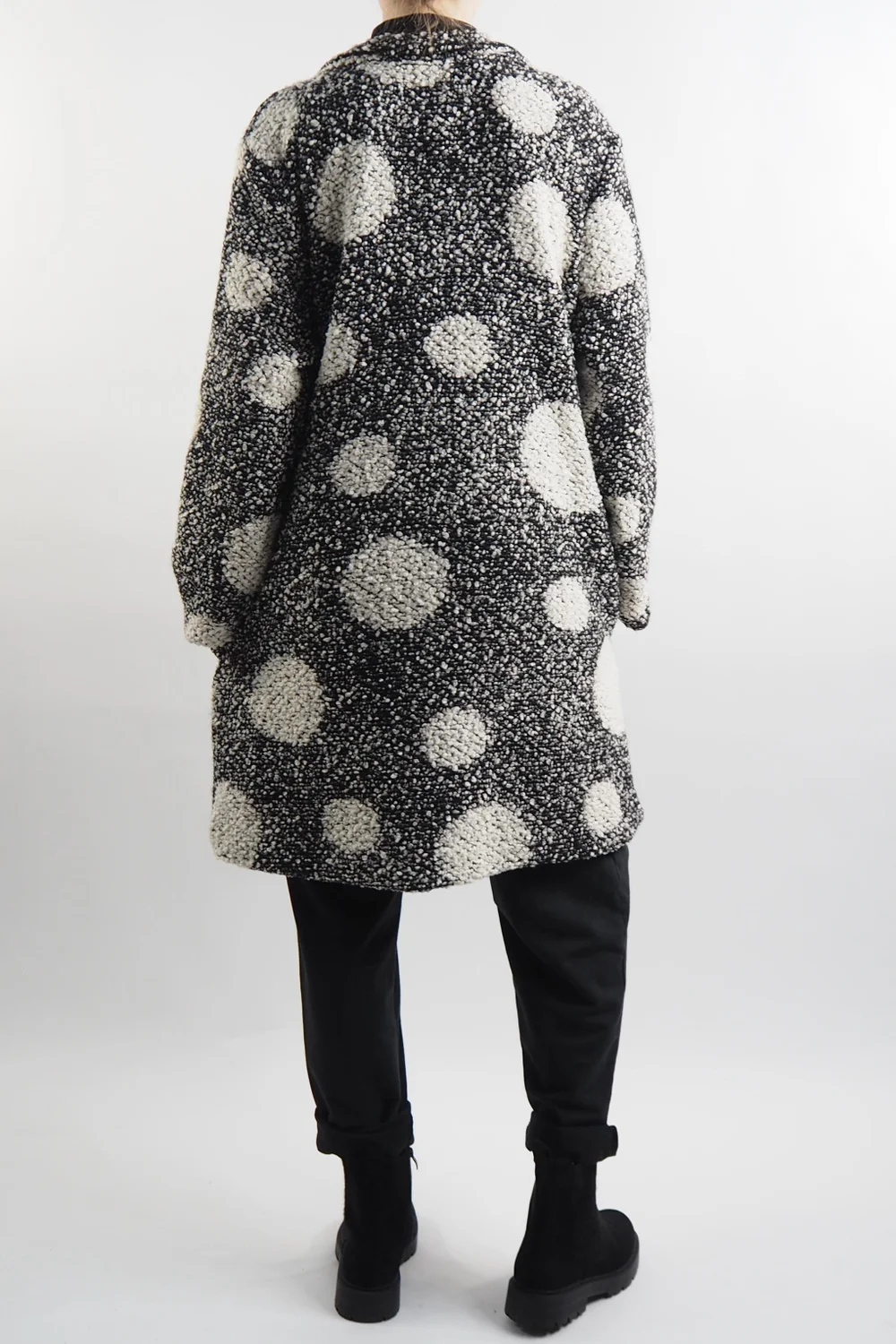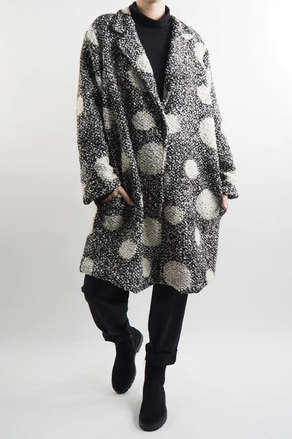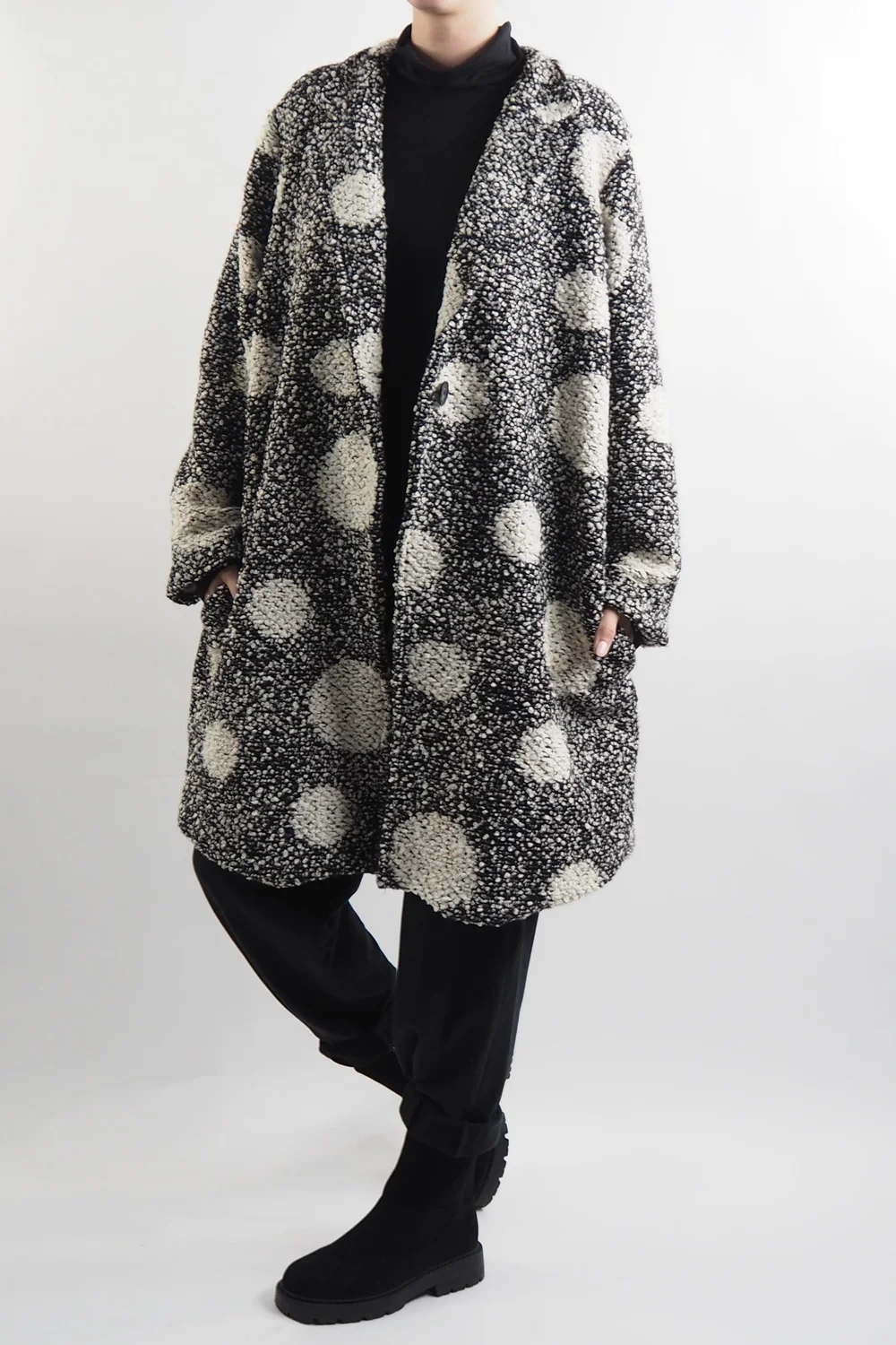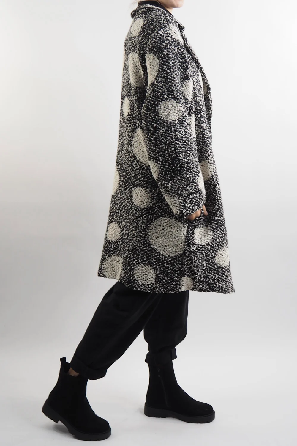 Indulge in the epitome of elegance with our luxurious bouclé jacket: add the Made in Italy Oslo Spot Boucle Jacket in to your autumn-winter wardrobe. This stunning piece boasts a sophisticated black and stone abstract weave, evoking a sense of timeless allure. The textured bouclé fabric not only caresses the skin with its softness but also elevates the tactile experience, making it a must-have for those who appreciate the finer things in life. Style with our Fine Jersey Polo Neck and Apres Dart Joggers from Made in Italy Clothing to finish your outfit. This jacket is a versatile masterpiece, effortlessly transitioning from day to night, making a bold statement with every step.