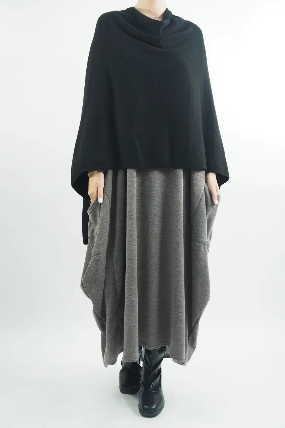 Behold the versatile Made in Italy oversized fine knit pocketed cocoon dress, in Mushroom, brown tone , adorned with pockets. This masterpiece celebrates individuality, catering to all shapes and sizes with its universally flattering silhouette. The cocoon-style draping gracefully conceals and reveals, ensuring comfort and confidence for every wearer. Whether you’re strolling through an art gallery, sipping cocktails at a rooftop, or simply enjoying a leisurely brunch with friends, this dress effortlessly takes you from day to night. Embrace your inner artist and let this maxi pocketed cocoon dress be your canvas for self-expression. With its exquisite blend of style, comfort, and originality, it’s the perfect choice for any occasion that calls for a touch of artistic flair. Dress it up or down, and let your fashion sense paint the town with brilliance, it’s the perfect dress for layering too.