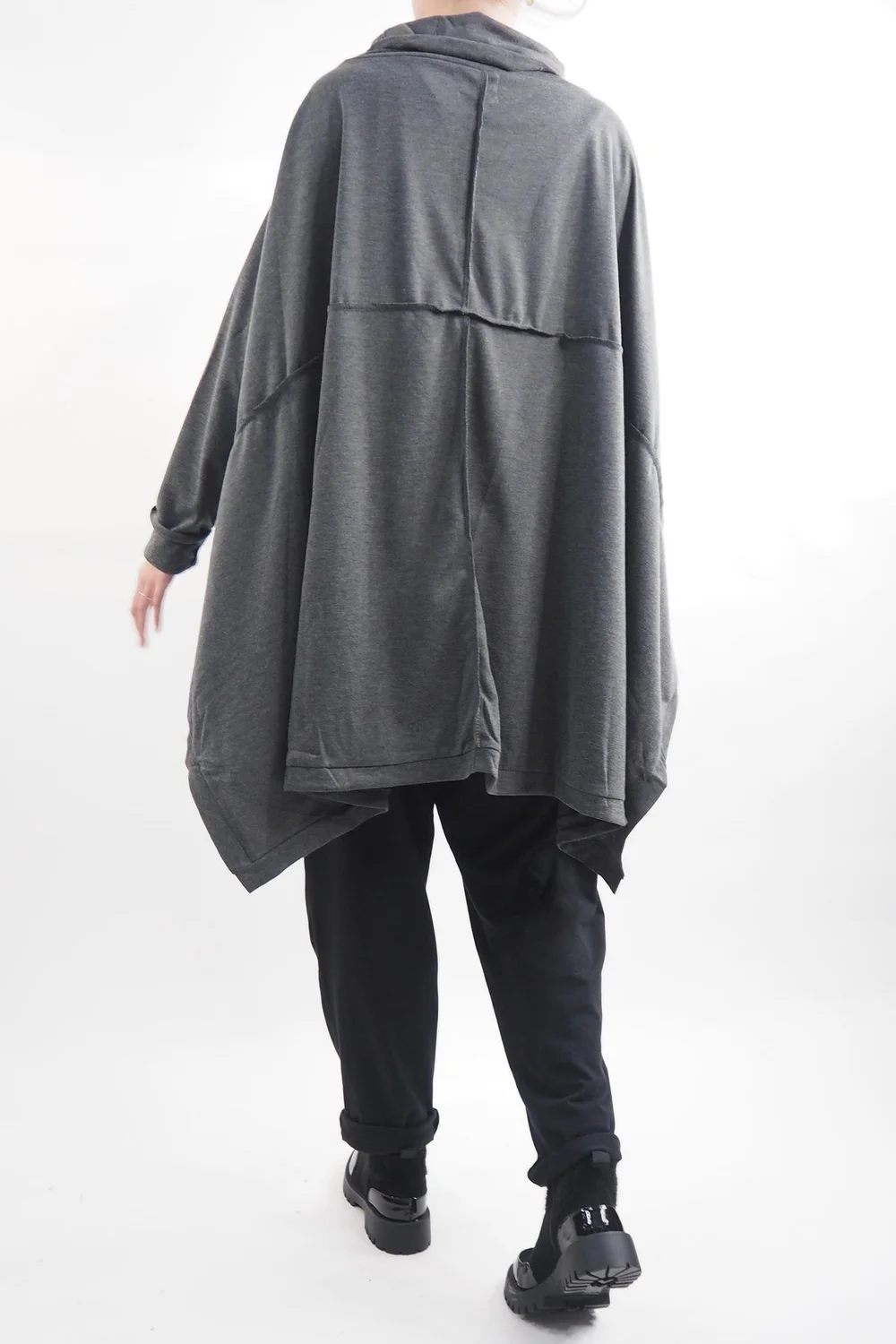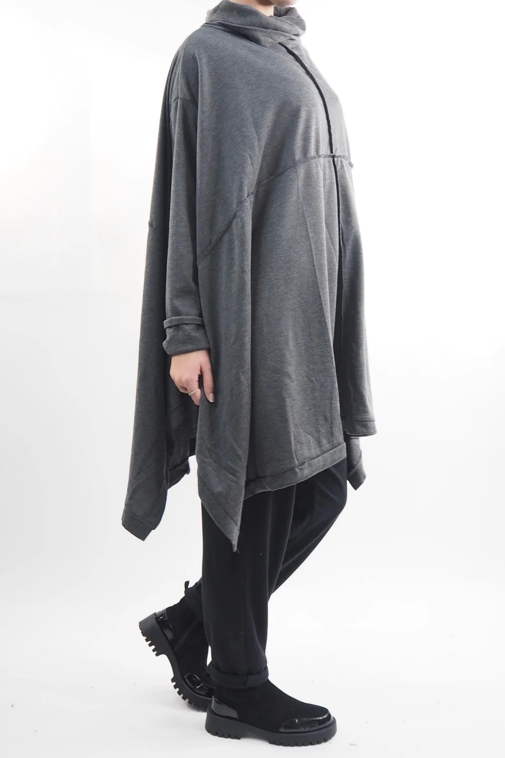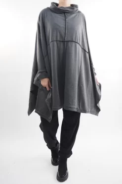 The Made in Italy Oversized Inside Out Cowl Top in charcoal grey tone with impeccable seam detail. This cutting-edge garment effortlessly blurs the lines between edgy and elegant, making it the ultimate statement piece for the modern fashionista. Made with precision, the top features exposed seams that not only add a touch of raw sophistication but also showcase the meticulous craftsmanship behind the design. Its inside-out construction adds an intriguing twist, revealing the garment’s inner beauty and emphasizing its unique silhouette.