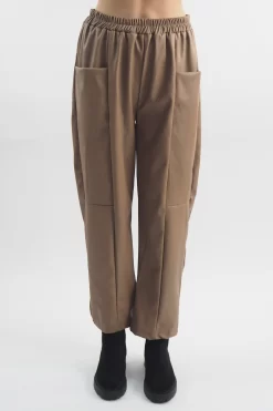 Made In Italy Pesca Leather Look Deep Pocket Pant Camel