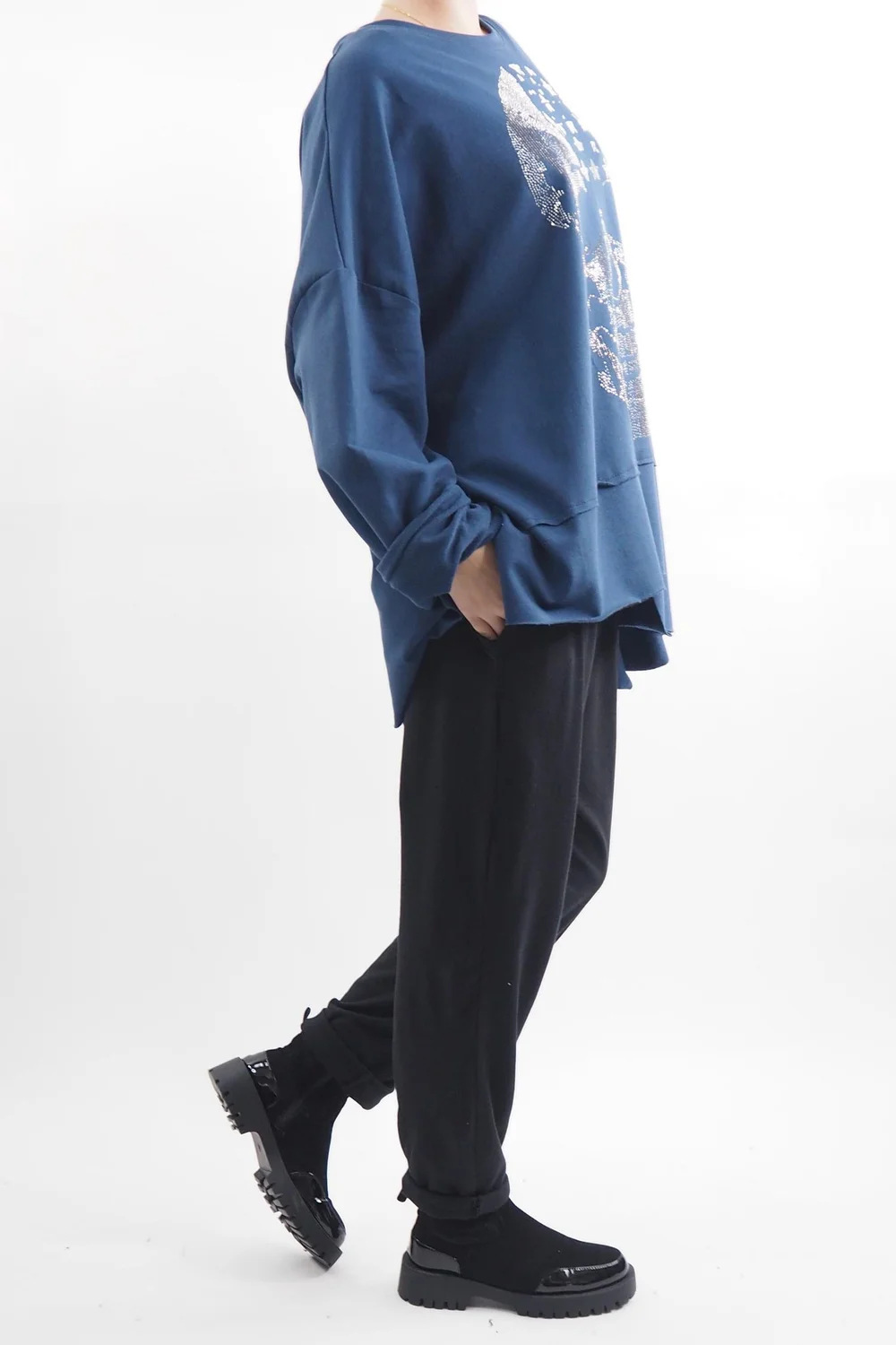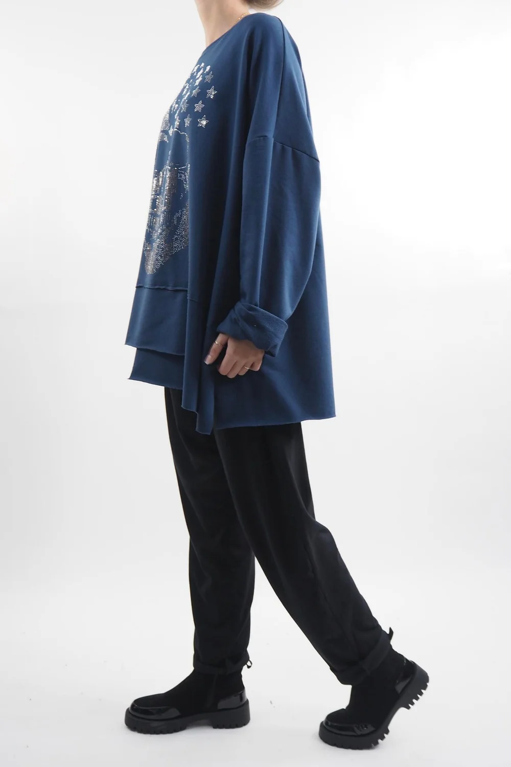 Get ready to unleash your inner rockstar with the Made in Italy Queeni Star Skull Cut Out Top in Airforce blue tone, adorned with a mesmerizing Star Skull Micro Stud design in pewter silver! This edgy yet incredibly comfortable piece redefines the boundaries of casual fashion, making it a must-have addition to your wardrobe.