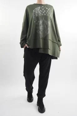 Made In Italy Queeni Star Skull Cut Out Top Khaki