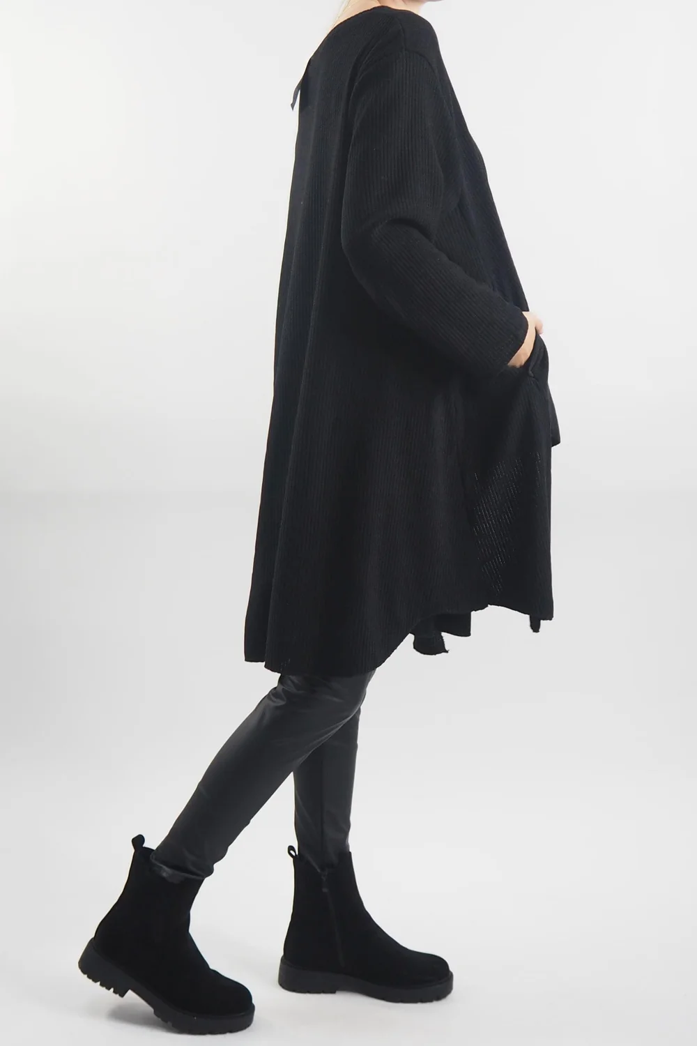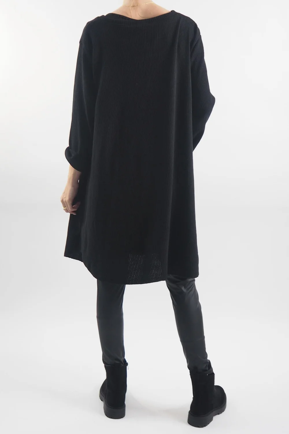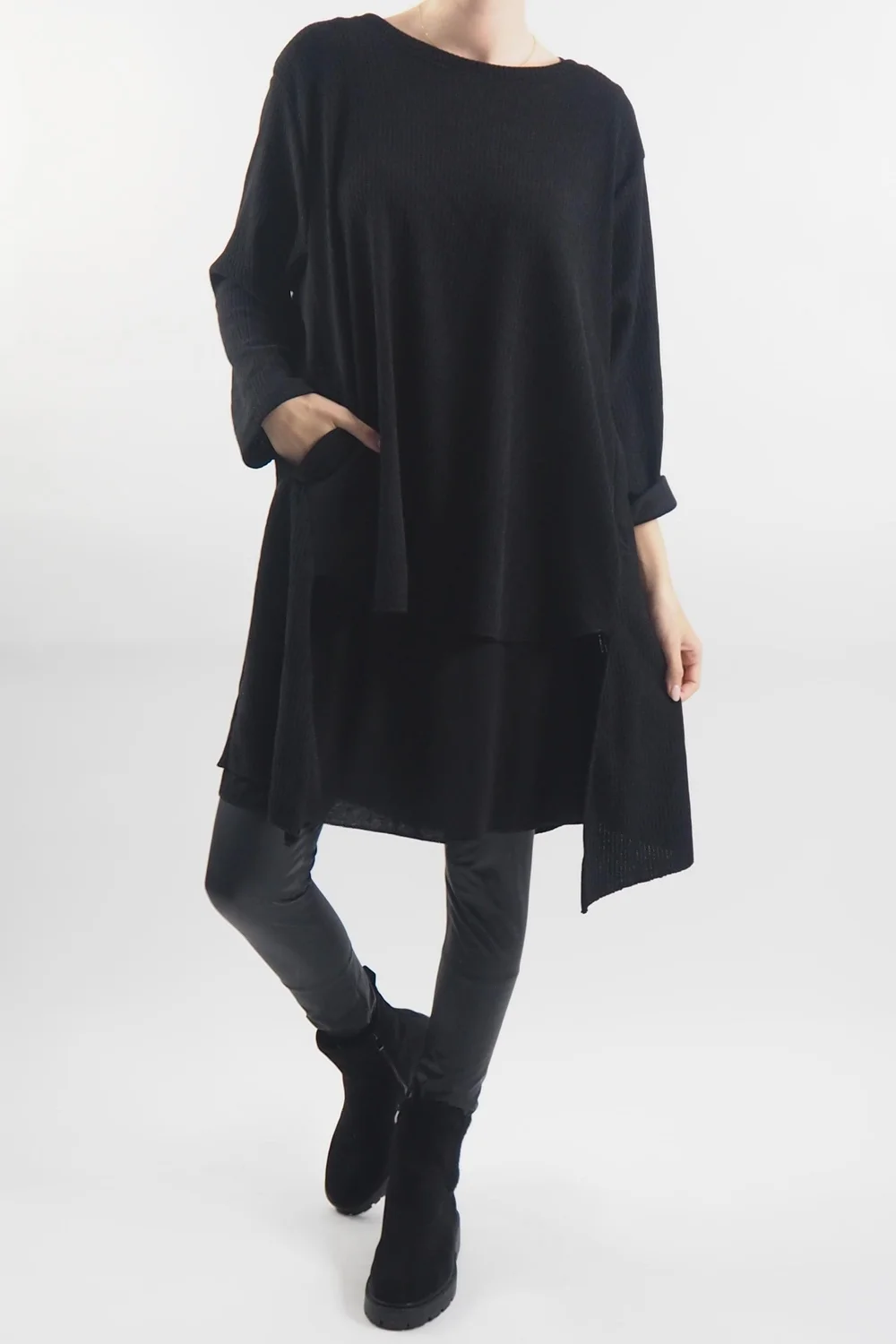 Indulge in the opulence of the autumn-winter season with our Made in Italy Rib Velvet Soft Stretch Pocket High Low Top in Black. This luxurious piece is designed to envelop you in warmth and style, making it an essential addition to your seasonal wardrobe. The sumptuous ribbed velvet fabric not only feels heavenly against your skin but also adds an air of sophistication to any outfit. With the added convenience of pockets, you can stay cosy while keeping your essentials close at hand. The high-low hemline adds a touch of drama and flair, ensuring you stand out in any crowd. Embrace the cosy glamour of the season with this exquisite top, and make a bold fashion statement that effortlessly blends comfort and style.