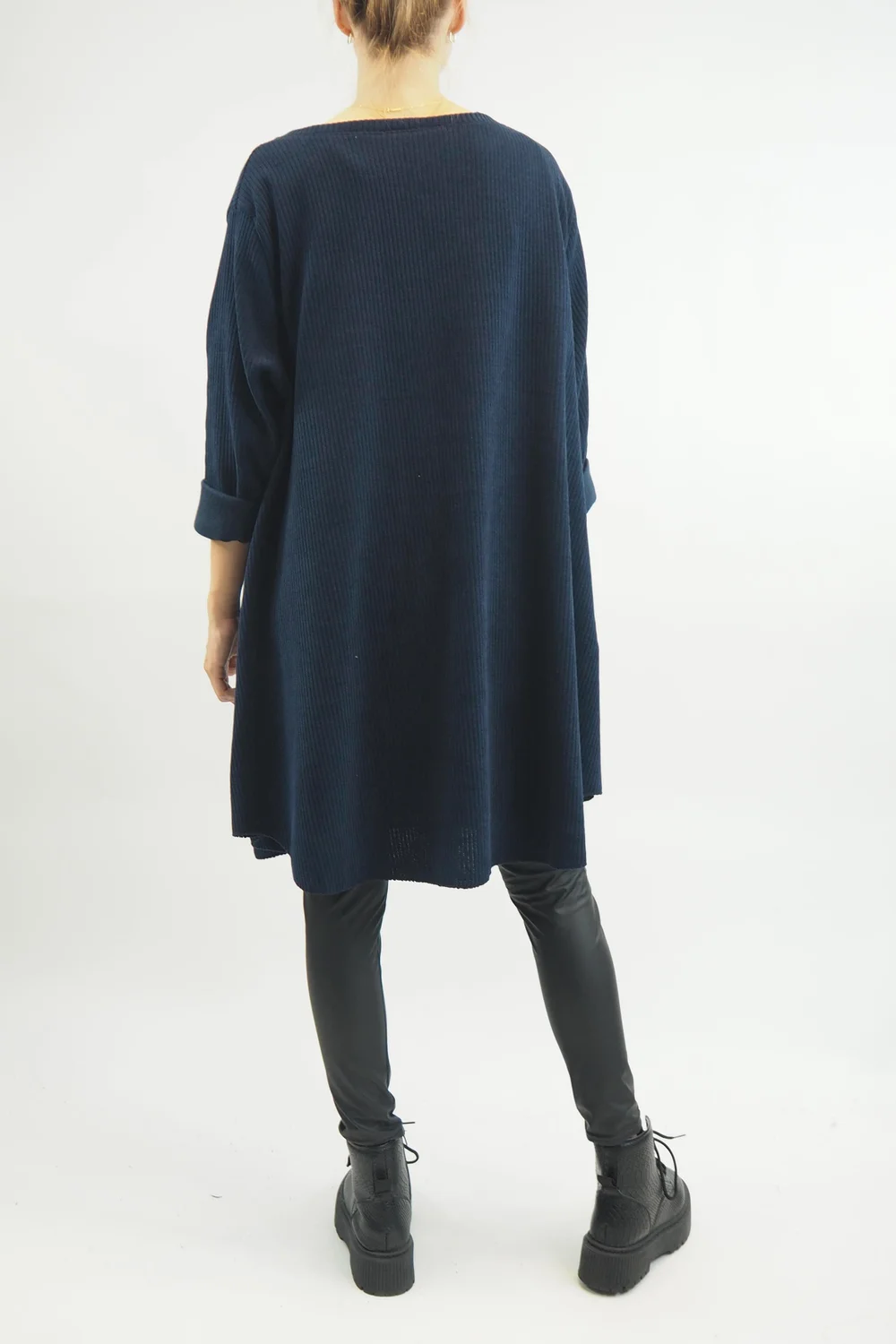 Indulge in the opulence of the autumn-winter season with our Made in Italy Rib Velvet Soft Stretch Pocket High Low Top in Navy blue tone. This luxurious piece is designed to envelop you in warmth and style, making it an essential addition to your seasonal wardrobe. The sumptuous ribbed velvet fabric not only feels heavenly against your skin but also adds an air of sophistication to any outfit. With the added convenience of pockets, you can stay cosy while keeping your essentials close at hand. The high-low hemline adds a touch of drama and flair, ensuring you stand out in any crowd. Embrace the cosy glamour of the season with this exquisite top, and make a bold fashion statement that effortlessly blends comfort and style.