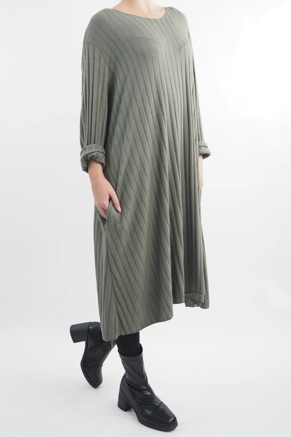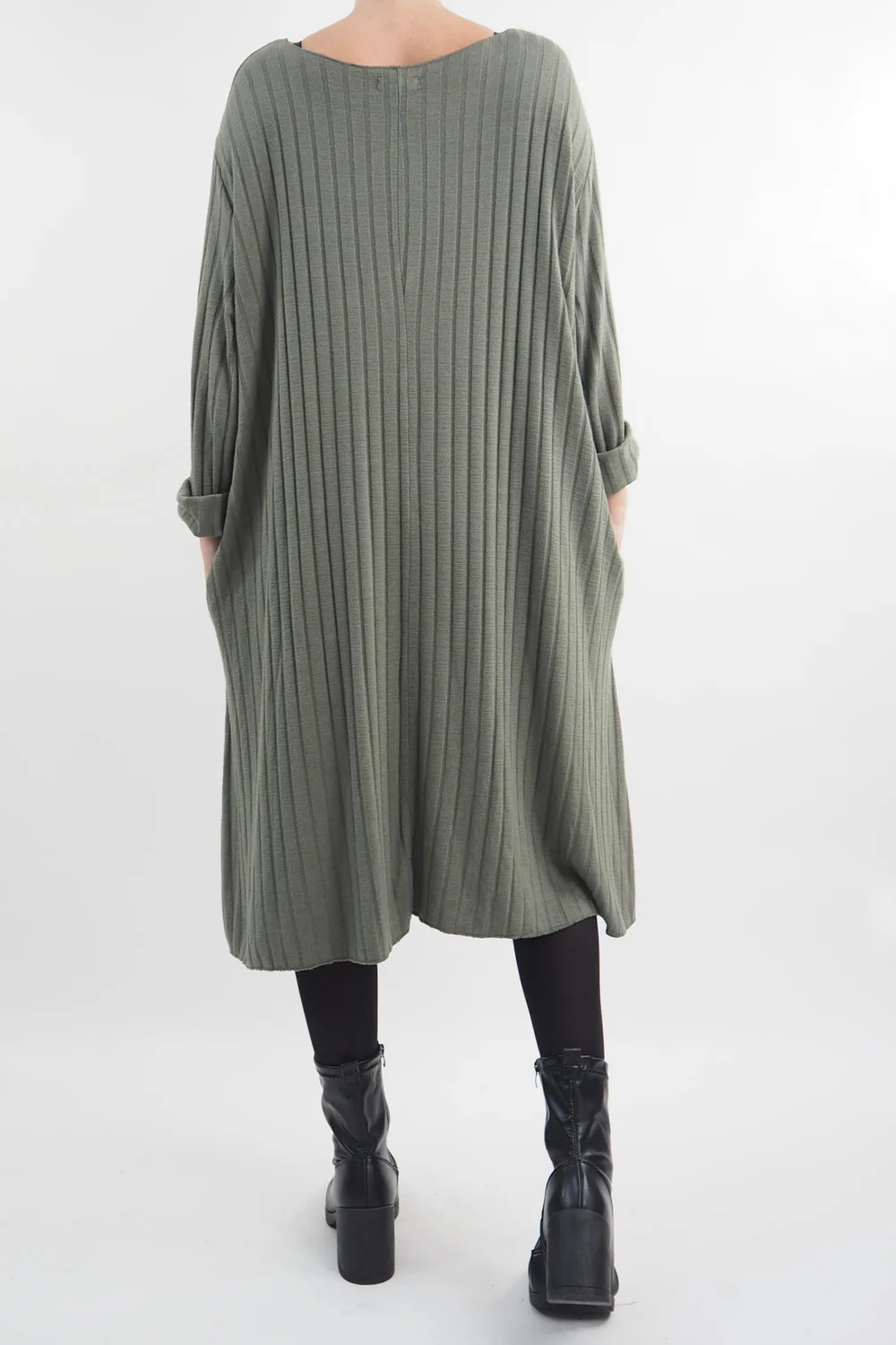 Introducing the epitome of effortless chic: our Ribbed Soft Knit Trapeze Dress in Khaki, green tone, from Made in Italy Clothing. This versatile garment is a must-have in everyones wardrobe. Whether you’re opting for a sporty, urban look with a pair of our Bromley pumps or channeling sophistication with a heeled Richmond boot, this dress is your canvas for style exploration. Elevate your fashion game effortlessly with this dress, making it the ultimate choice for those who crave comfort without compromising on style.