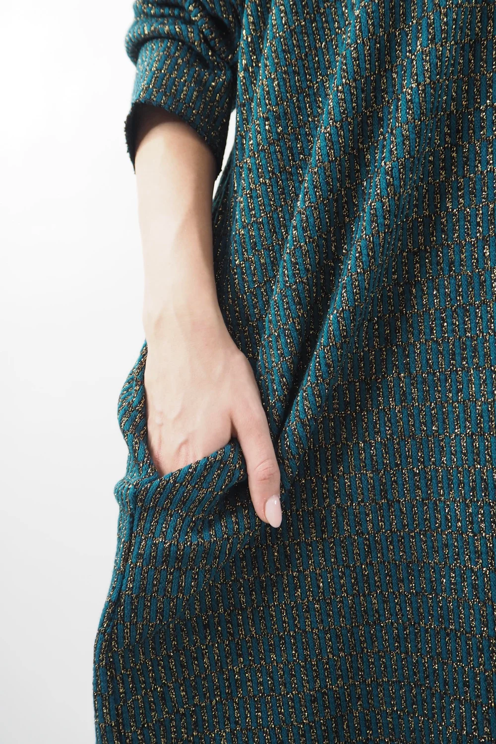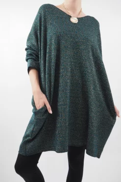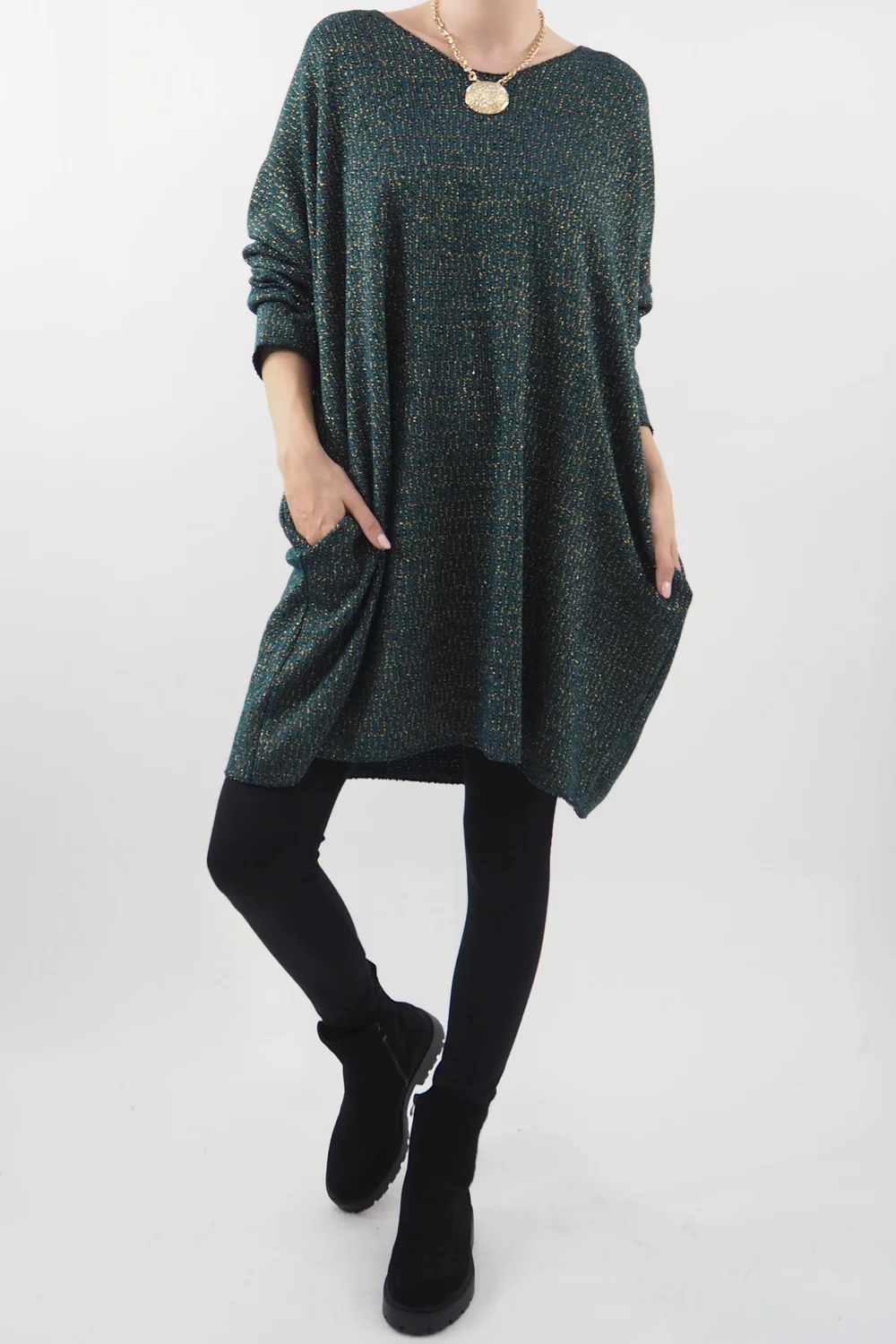 Introducing the epitome of versatile fashion: the Made in Italy Shimmer Me Softly Dress in Prussian, blue tone. This enchanting garment effortlessly bridges the gap between everyday chic and party season glamour. Crafted with a shimmering lurex thread, it exudes a subtle sparkle, making it a standout choice for both casual strolls and festive soirees. Its comfortable shift silhouette ensures a flattering fit while maintaining a relaxed feel, perfect for all-day wear. Style with tights and Kensington 72’s or Cosy Legs and Chunky Boots.