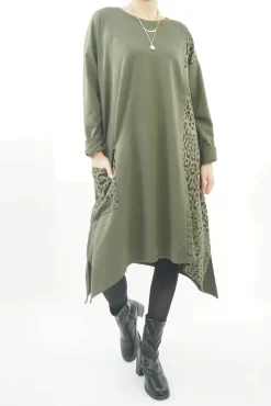 Unleash your inner fashion beast with this stunning Made in Italy Tokyo Leopard Panel Dress in Shadow grey tone a Made in Italy long sleeve dress that’s sure to make a statement. Featuring a fierce leopard print panel, this dress is perfect for showing your wild side. The pocket detail adds a touch of functionality to this bold and daring piece, making it not only stylish but also practical. Whether you’re hitting the town or attending a glamorous event, this dress is a must-have for anyone looking to add a touch of animal magnetism to their wardrobe. Get ready to turn heads and embrace your wild side with this sizzling fashion choice.Â