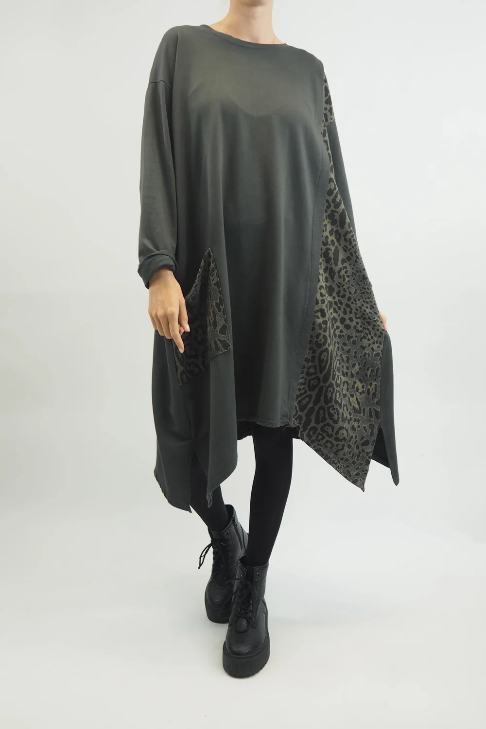 Made In Italy Tokyo Leopard Panel Dress Shadow