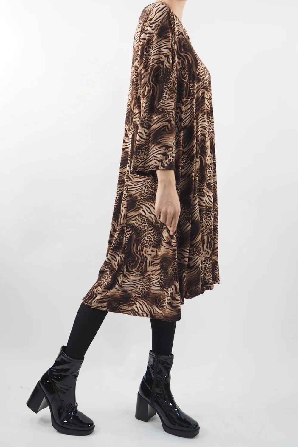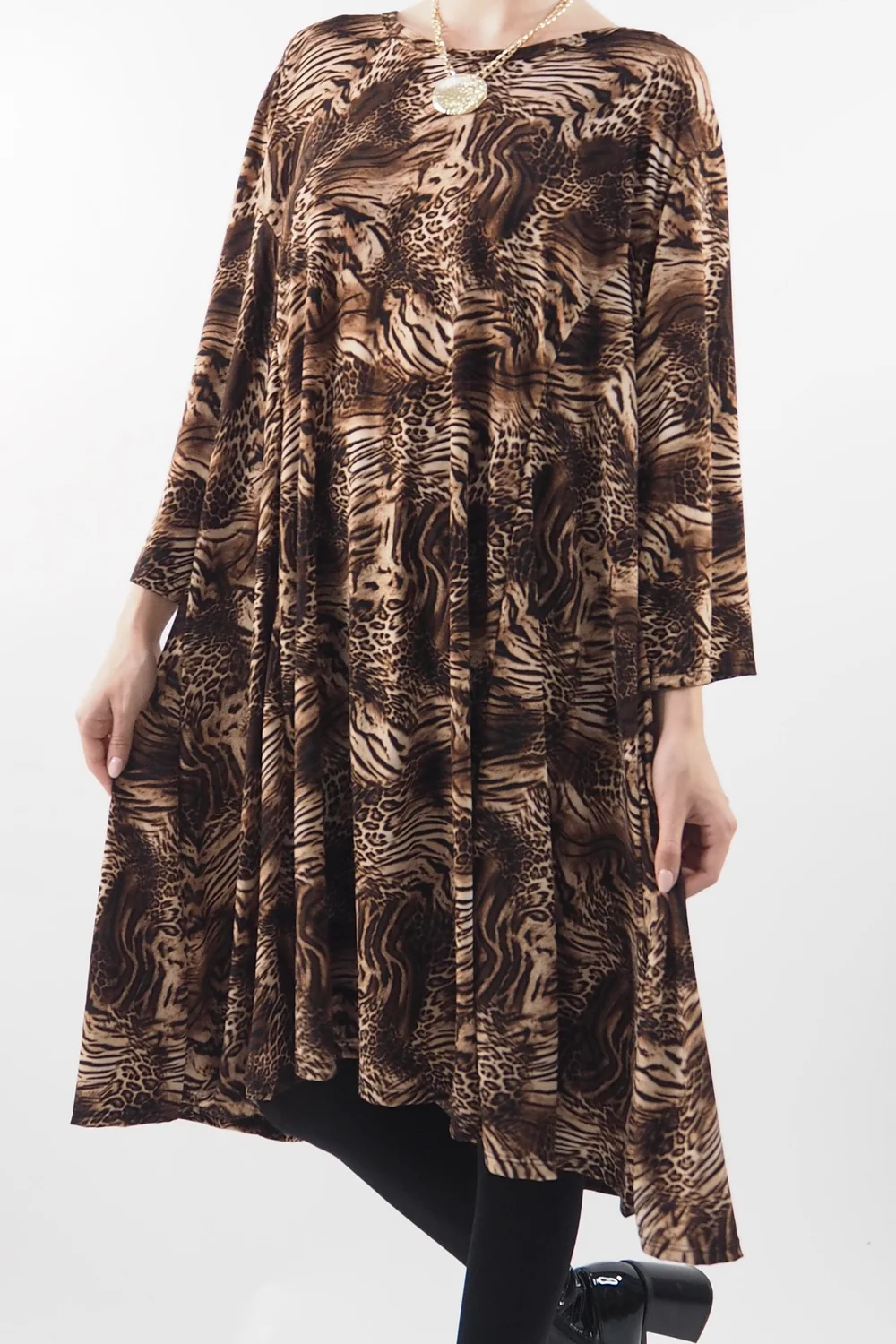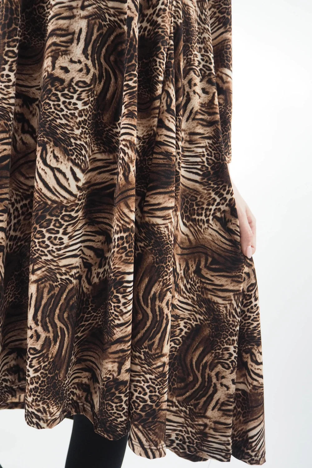 Get ready to unleash your inner wild side with the latest sensation: our Made in Italy Zadig Leopard Panel Swing Dress in Naturals is here to make a bold statement, with its striking print, this dress is the epitome of avant-garde elegance. The clever paneling and super stretch fabric provide a perfect fit for all body types. Effortlessly chic and ultra-comfortable, it’s a versatile piece that can seamlessly transition from day to night. Pair with our Ori Chunky Chelsa Boots for a daytime look or Kensington 72’s for an evening of glam.