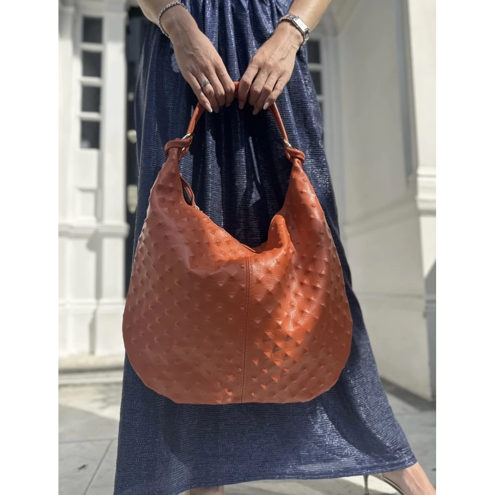 A beautiful boho bucket shape leather bag, featuring pyramid stud raised effect in the leather