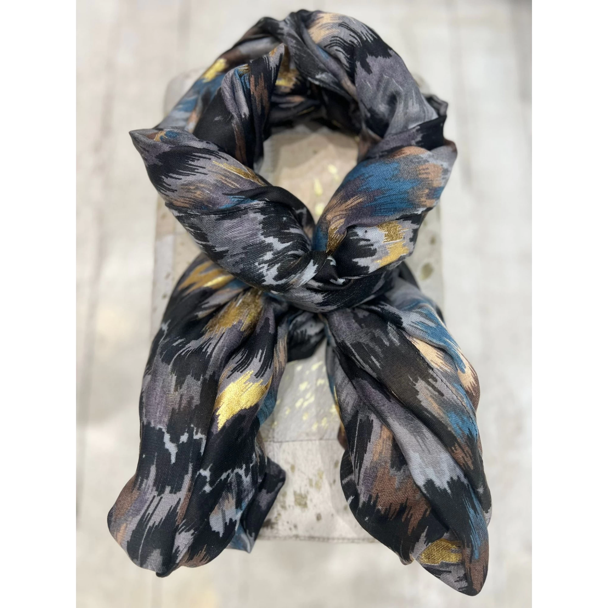 Malini Brushstroke Grey Misso Foil Print Scarf