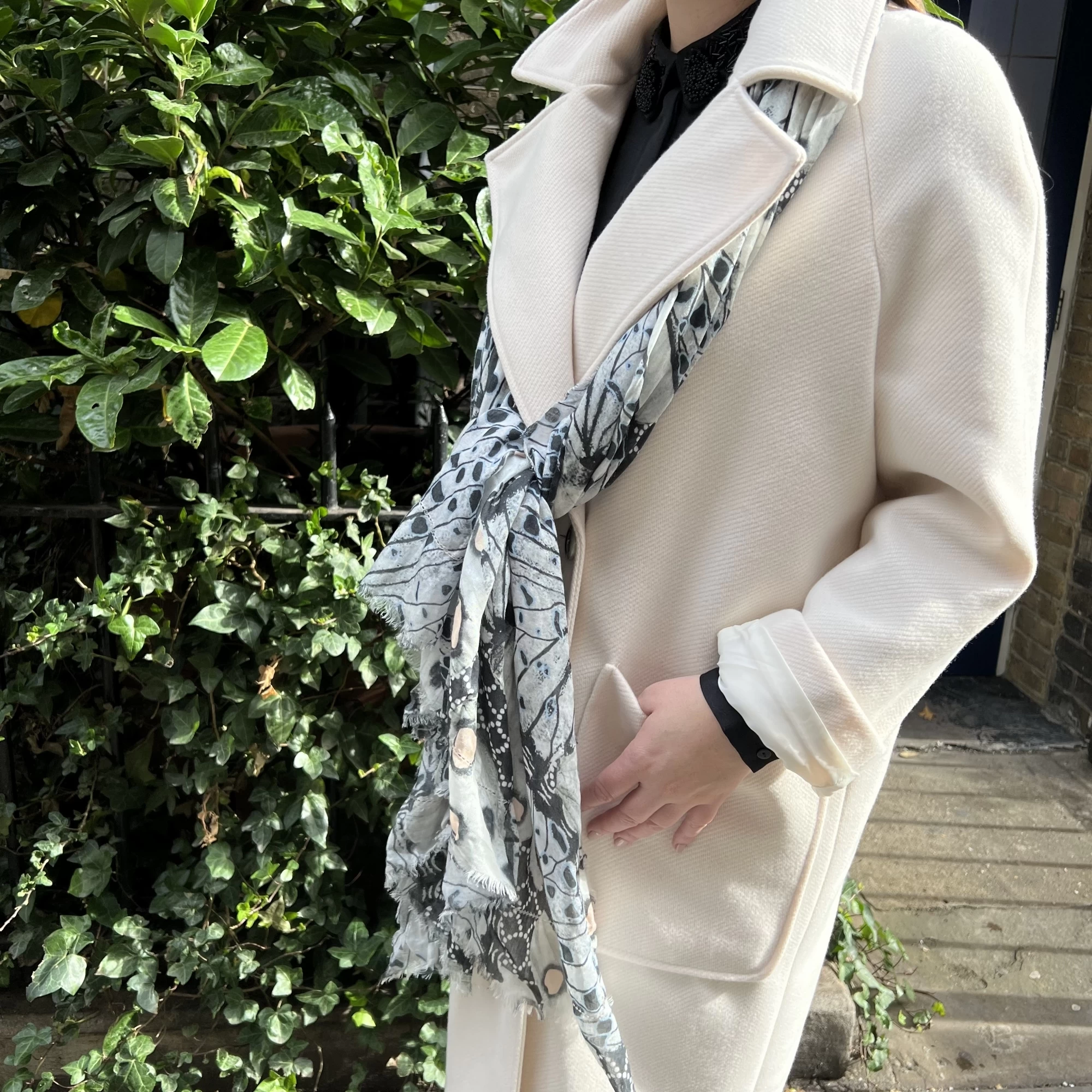 A gorgeous scarf perfect for the cooler days featuring a beautiful butterfly print