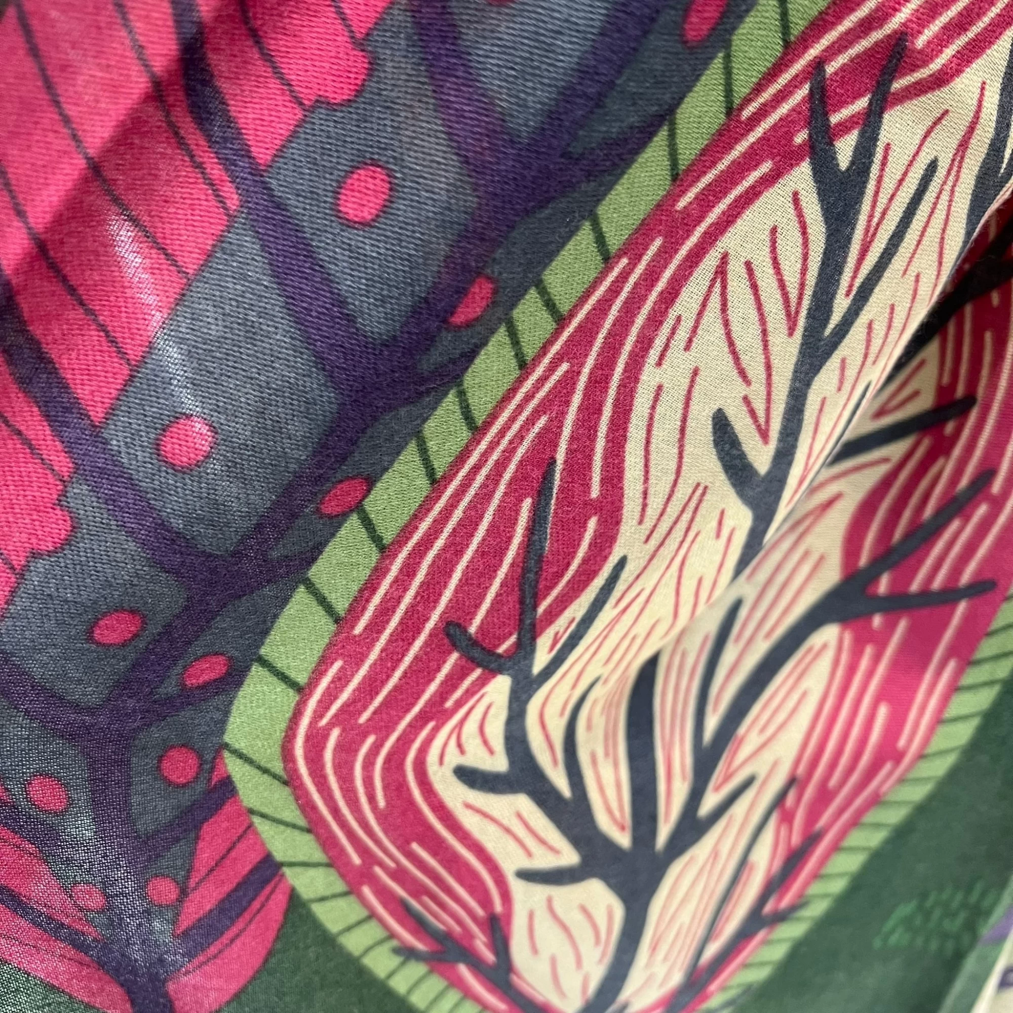 A nice soft touch long scarf crafted from a natural viscose yarn, featuring a cactus print
