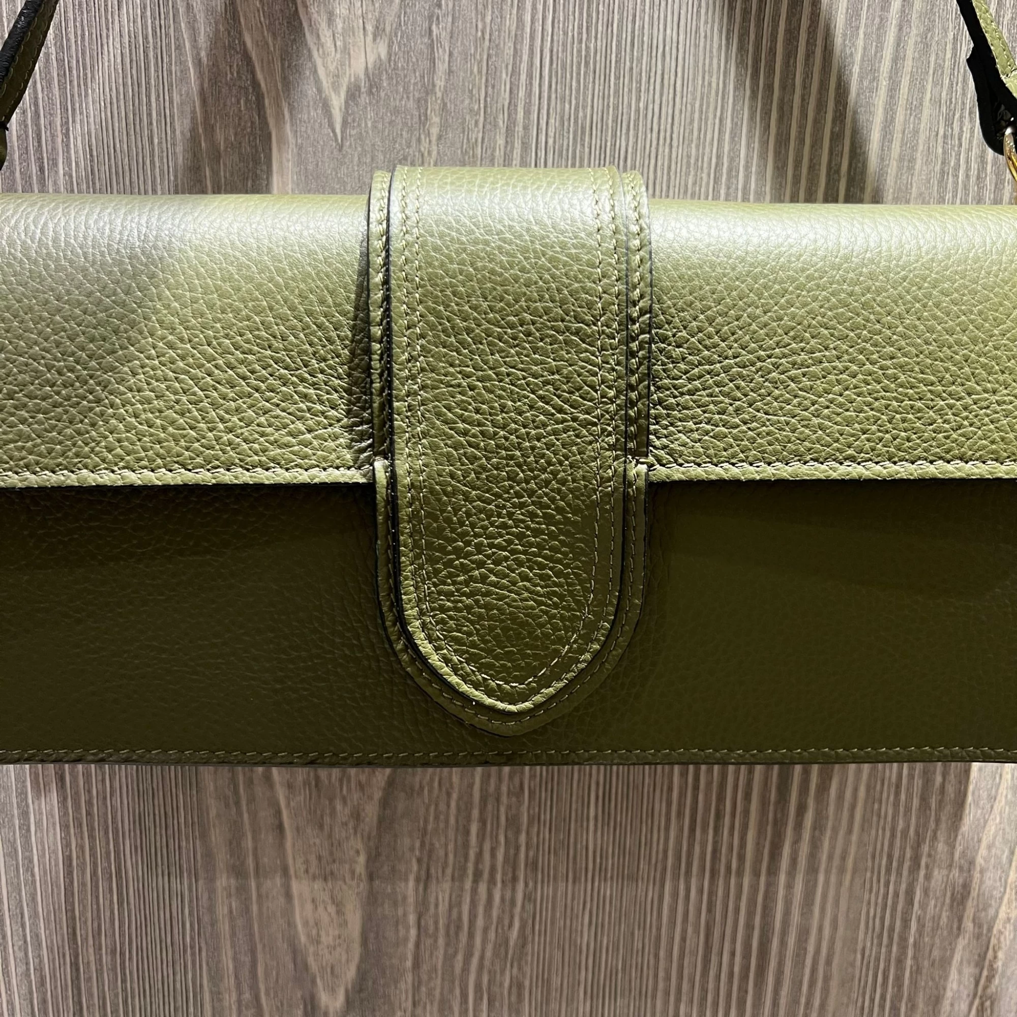 A nice leather bag featuring gold tone fixings and a clasp front, we love this