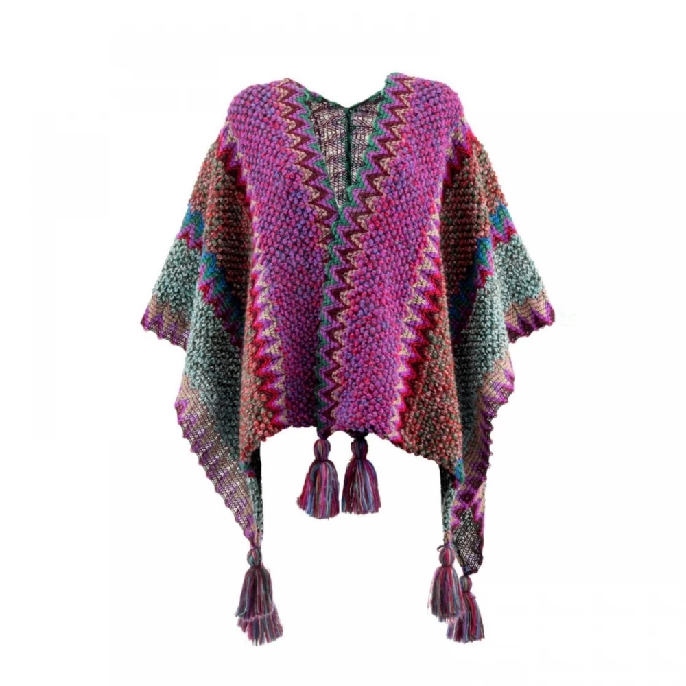 Malini Myra Burgundy Multi Knitted Tassle Trim Shawl