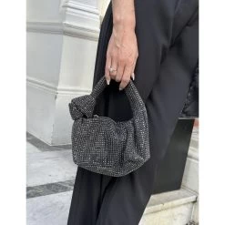 A gorgeous bag that has a zip closure, heavily jewelled and has a nice weight to the overall bag, featuring a knot handle we love this