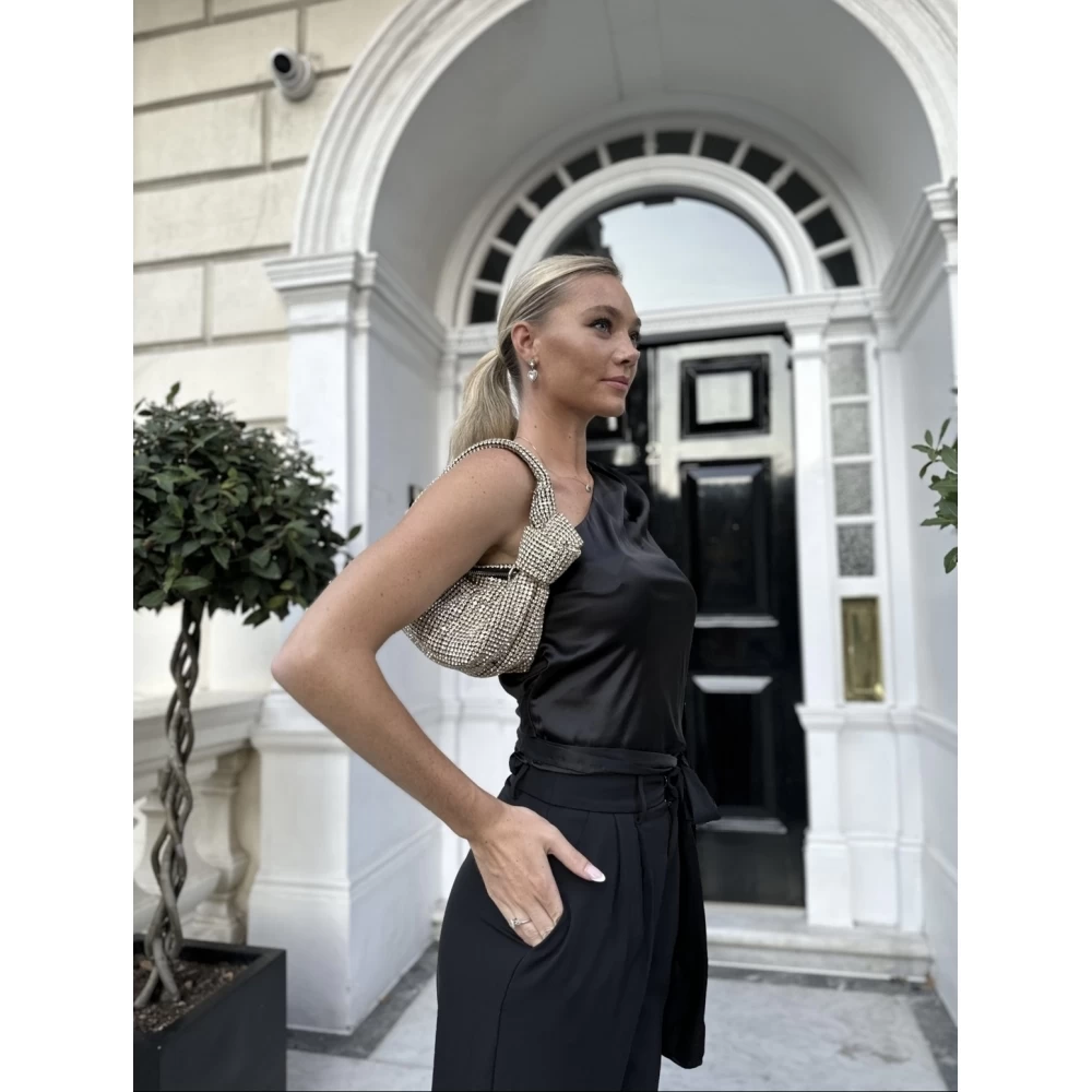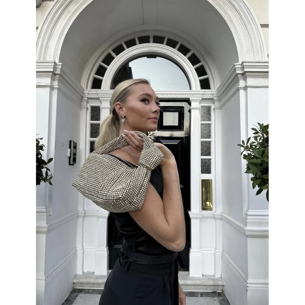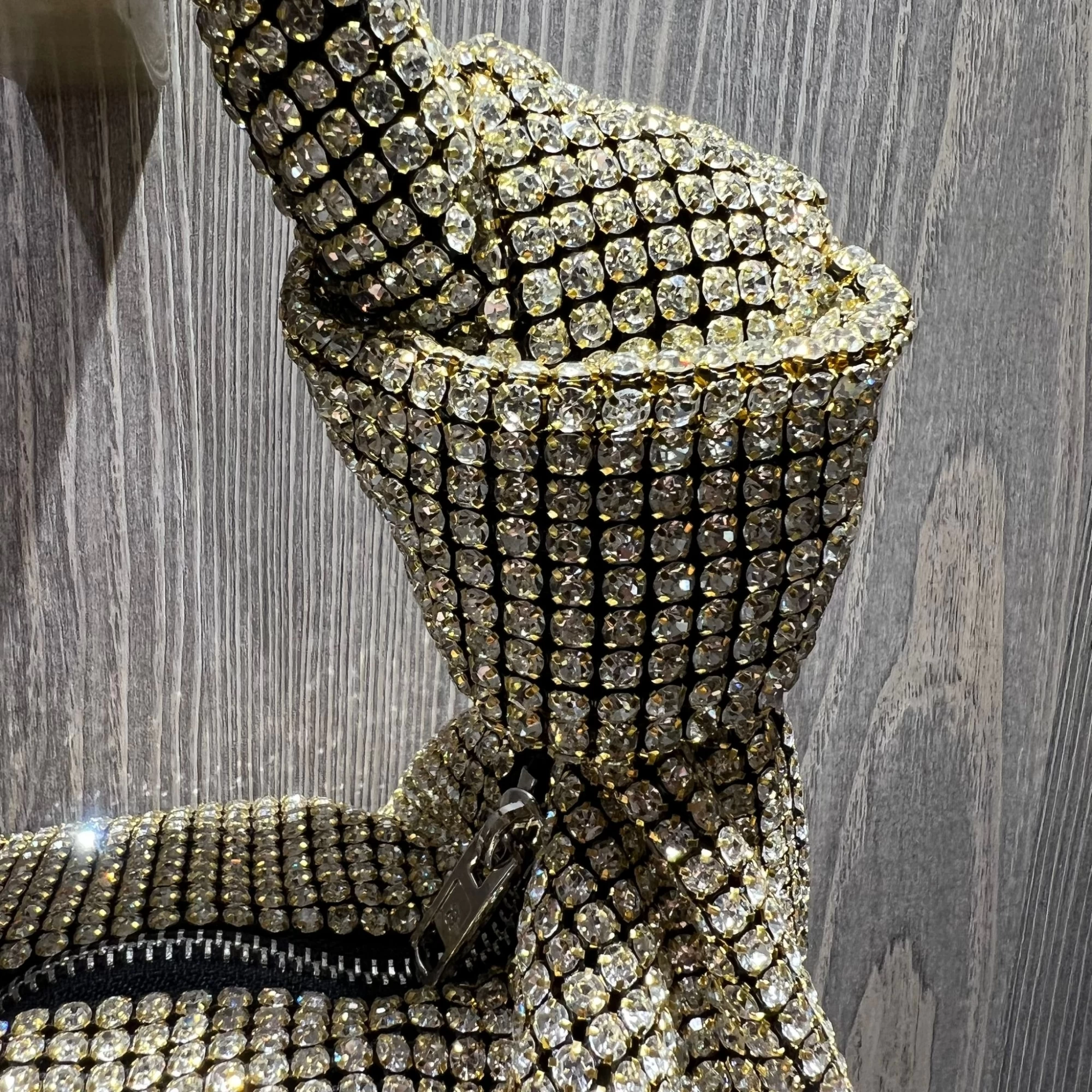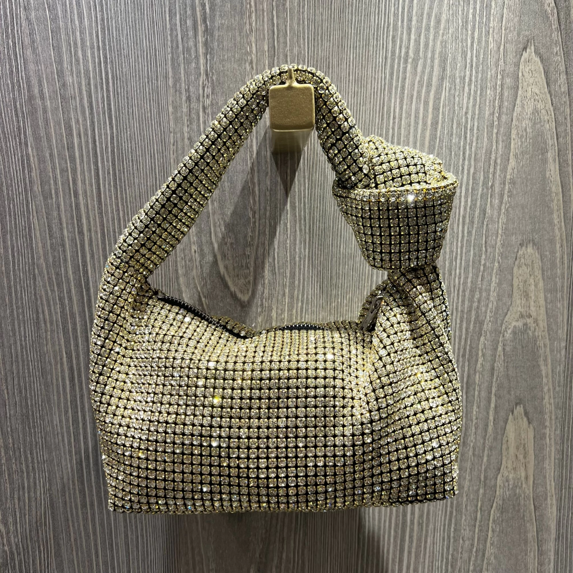A gorgeous bag that has a zip closure , heavily jewelled and has a nice weight to the overall bag, featuring a knot handle, we love this