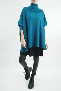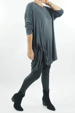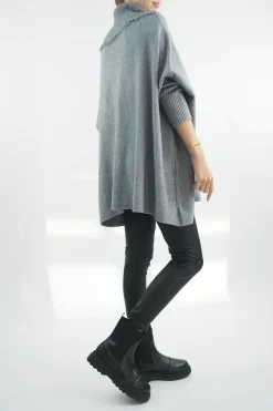 Made In Italy Conrad Oversized Fray Cowl Knit Top Slate Marl