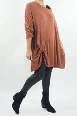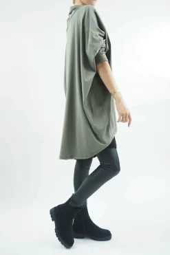 Made In Italy Conrad Oversized Fray Cowl Knit Top Olive Zing