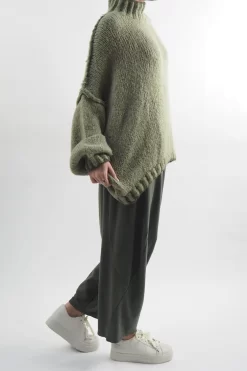 Made In Italy Arlo Basket Knit Top Khaki