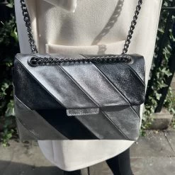 Vimoda Leather Silver And Black Two-tone Cross Body / Shoulder Large Bag