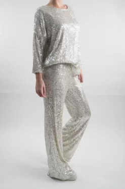 Made In Italy Trinny Shimmer Palazzo Trouser Ecru
